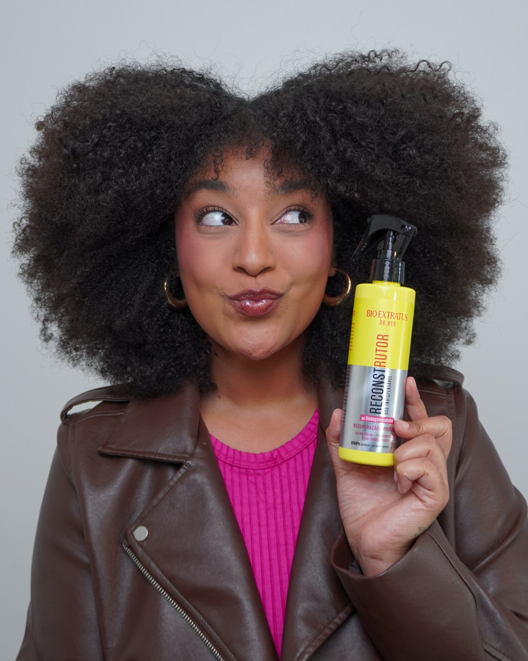 Antes do treino, o ideal é usar os sprays leves da Bio Extratus, que não pesam e criam uma blindagem rápida no fio.