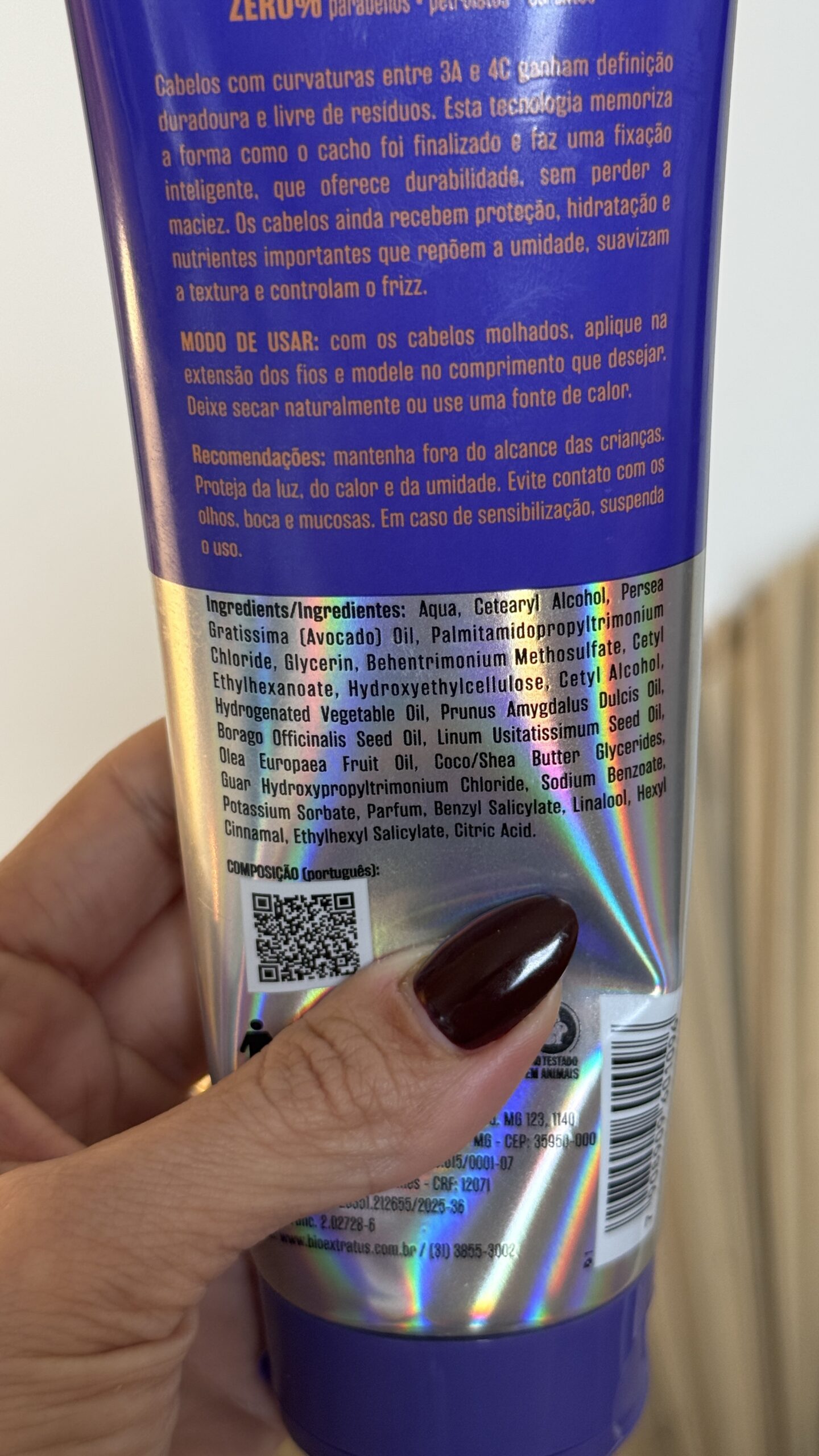 O meu cabelo é um 2C/3A, que tem partes mais onduladas e partes mais cacheadas. É um cabelo fino, mas que por ter tintura pede por produtos mais nutritivos. O meu fator encolhimento é mais notável quando utilizo produtos que definem muito meu cabelo e deixa minha curvatura mais fechada, o que não foi o caso desse produto.