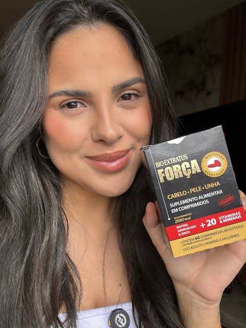 O suplemento força é sensacional! A Bio Extratus Força combinou tecnologia e a ciência da nutrição em um suplemento alimentar para fortalecer cabelo, pele e unha. Essa fórmula exclusiva concentra alto teor de zinco e biotina, e foi enriquecida com aminoácido, vitaminas e minerais, trazendo multibenefícios para seu organismo! Eu gosto de tomar 1 por dia após o café da manhã!