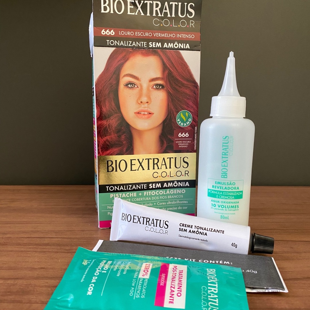 Quando o cabelo vermelho perde o brilho e a intensidade da cor, o tonalizante sem amônia da Bio Extratus é o aliado perfeito para devolver vida aos fios. Fórmula com Pistache, um ativo que trata enquanto a tonalização acontece, vai deixar a fibra sedosa e macia ao toque.