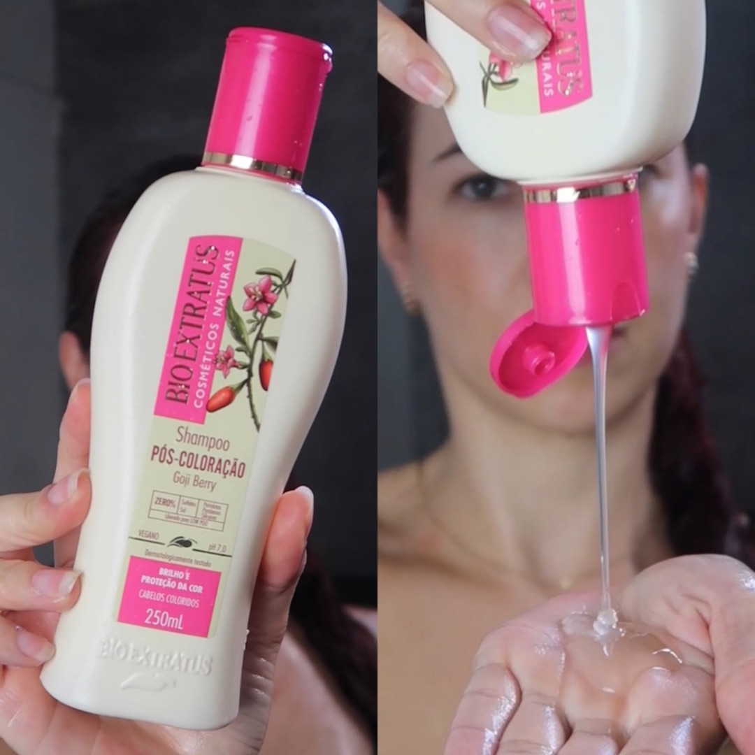 Manter a cor do cabelo vermelho sempre bonita e vibrante morando em uma cidade tipicamente tropical, é um grande desafio. Na hora de lavar com o shampoo, priorizo focar na higienização do couro cabeludo, sempre protegendo as pontas. O Shampoo Pós-Coloração da Bio Extratus é um ótimo aliado nessa rotina de cuidados no chuveiro. Possui uma fórmula suave, muito hidratante, que limpa sem ressecar e sem desbotar o pigmento dos fios.