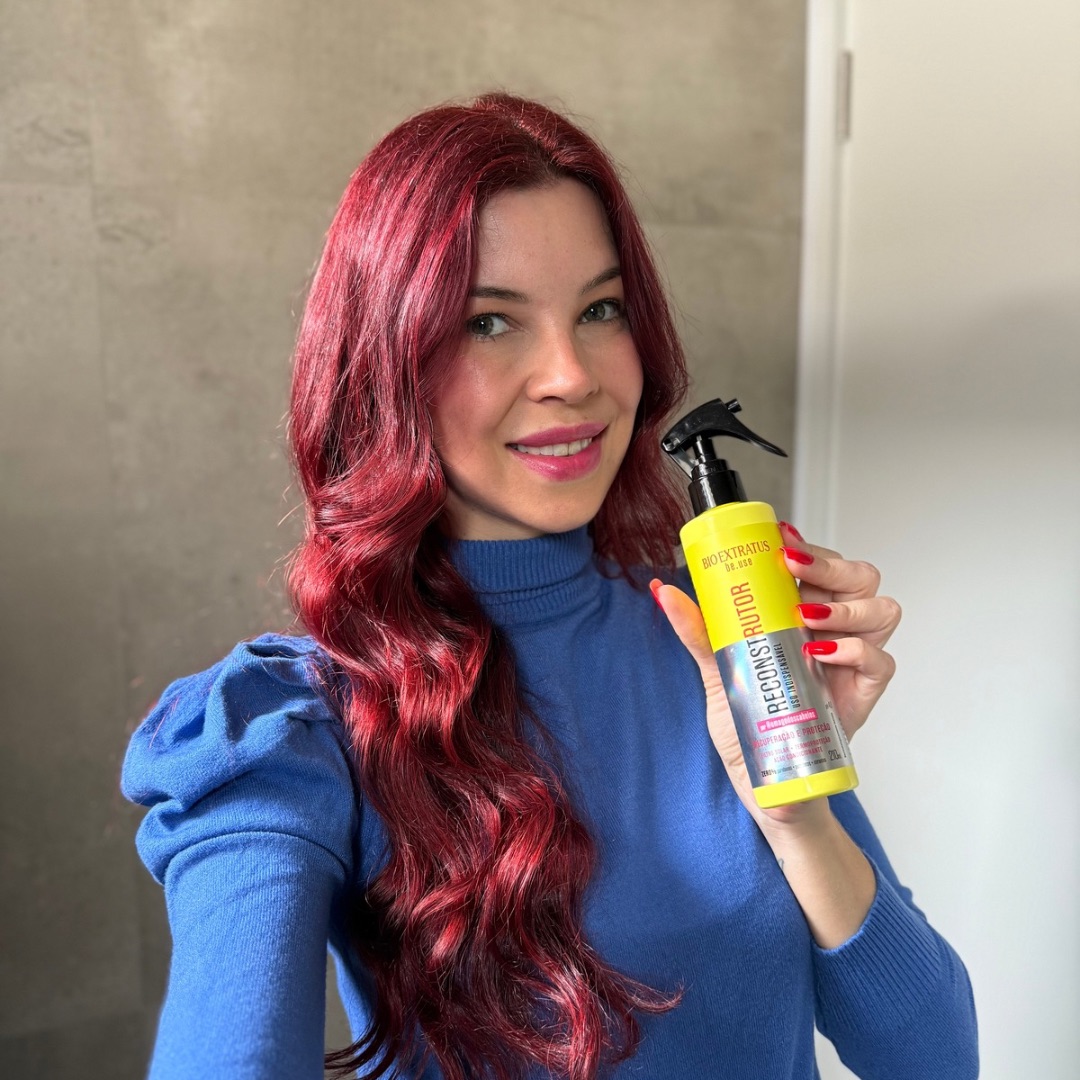 Essa novidade é um spray multifuncional, com alto pode de reconstrução e proteção da estrutura capilar, ajudando a manter a cor do cabelo vermelho sempre vibrante e os fios saudáveis. Um produto de uso indispensável, que precisa estar em um bom cronograma para manutenção da cor. Pode ser usado de diferentes formas, e como finalizador / pré-escova, vai criar uma película blindando a cor e a fibra capilar contra danos, desbotamento acelerado do pigmento e perda de umidade.