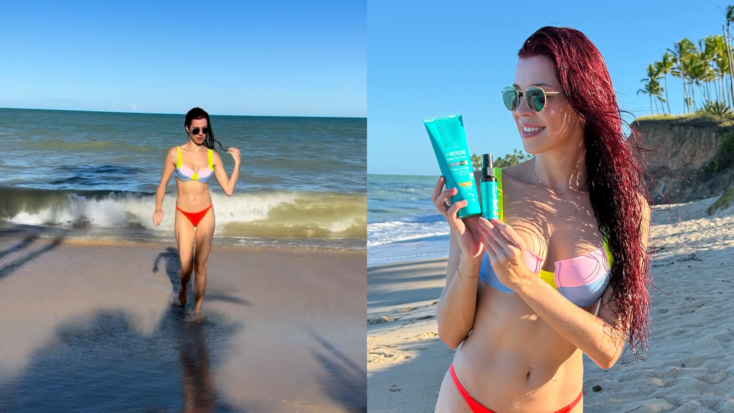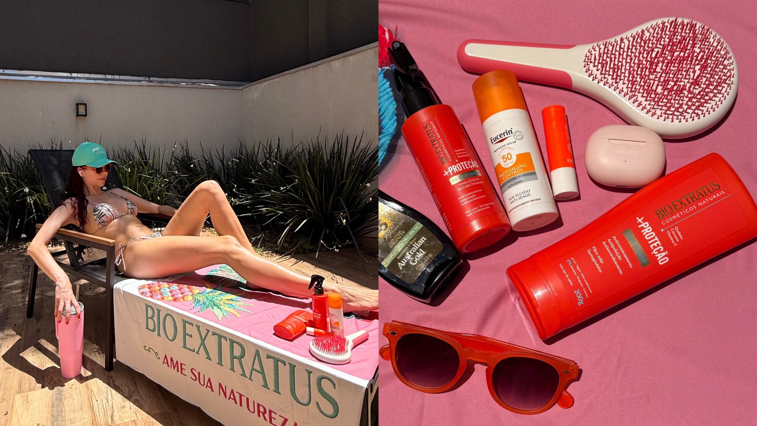 O sol é maravilhoso para a vida, porém ele destrói a queratina, causando ressecamento e desidratação do cabelo, além de oxidar o pigmento, fazendo com que a cor dure menos. A água da piscina contém cloro e sulfato de cobre, componentes que deixam a cutícula exposta e danificada. Já a água do mar, devido à alta quantidade de sal, vai ressecar e fragilizar a fibra, assim como o suor na hora do treino.